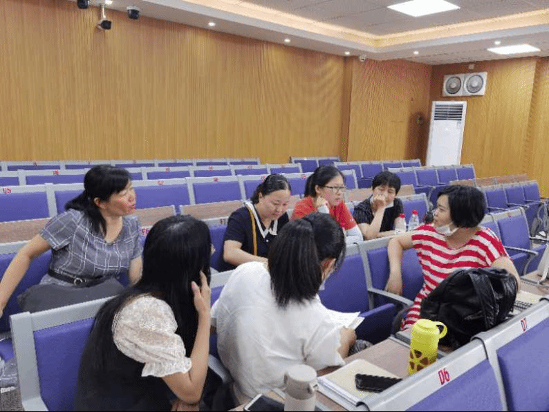 两校英语教师以年级分组进行教学经验交流,现场气氛热烈。