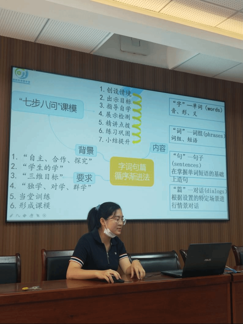 漳州市华侨中学官秋群老师为大家分享了该校的英语教学方法和教研活动。官老师也从学校培养新教师、送教下乡、新教师汇报课等方面与我校教师们进行了交流研讨。