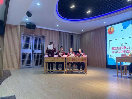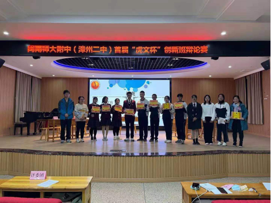 高二代表队(反方)获“最佳团队”,高一代表队(正方)获“优秀团队”。高二2班邱洁仪获“最佳辩手”。