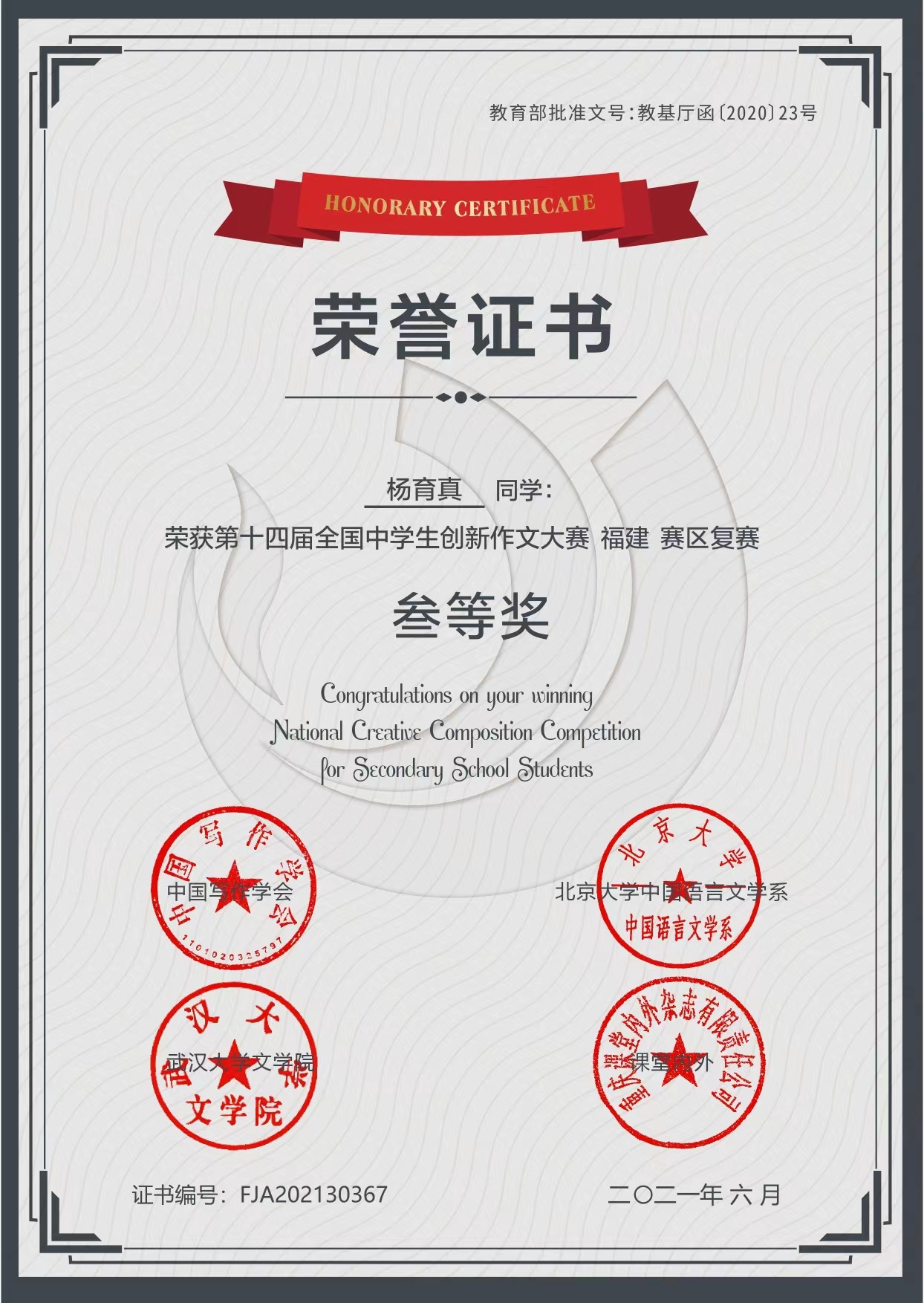 2021年第十四届全国中学生创新作文大赛福建赛区复赛