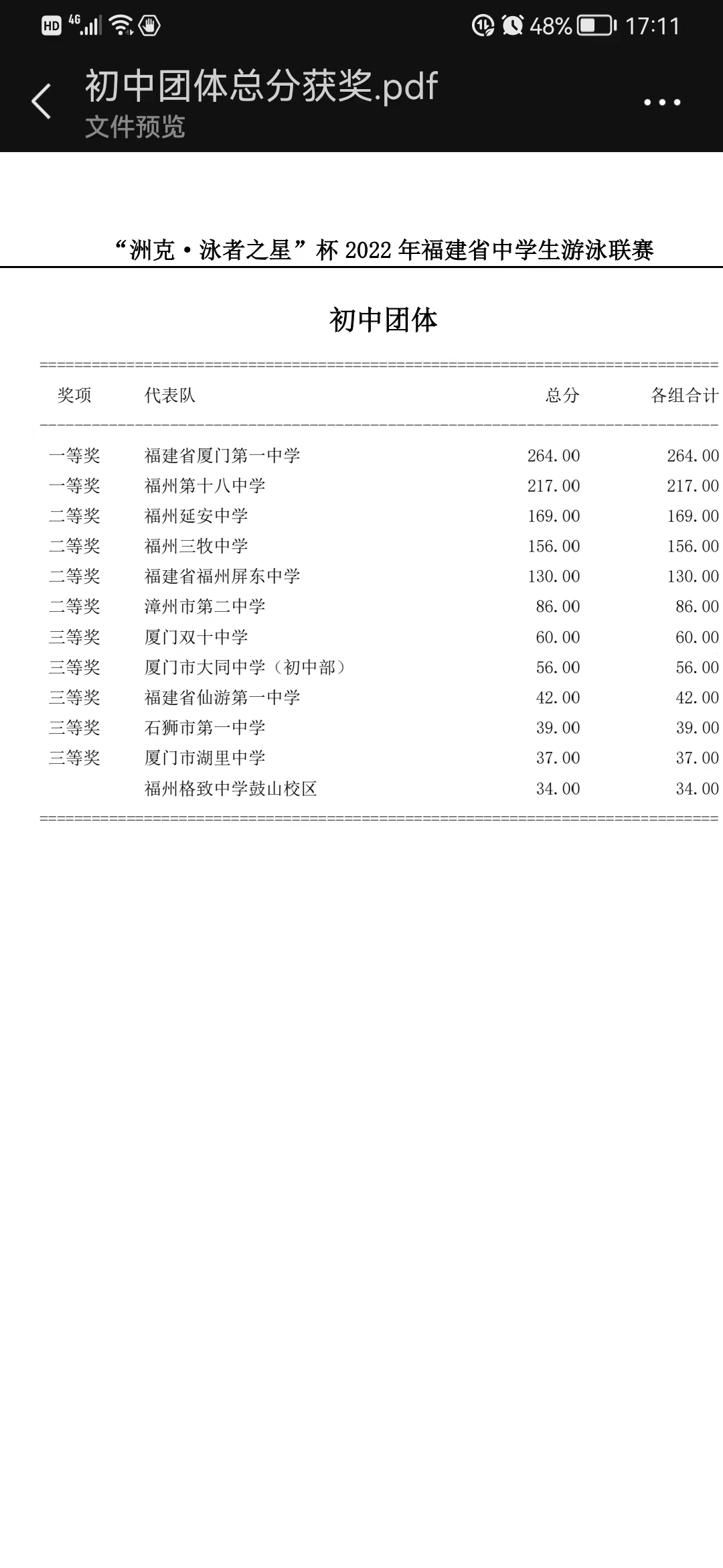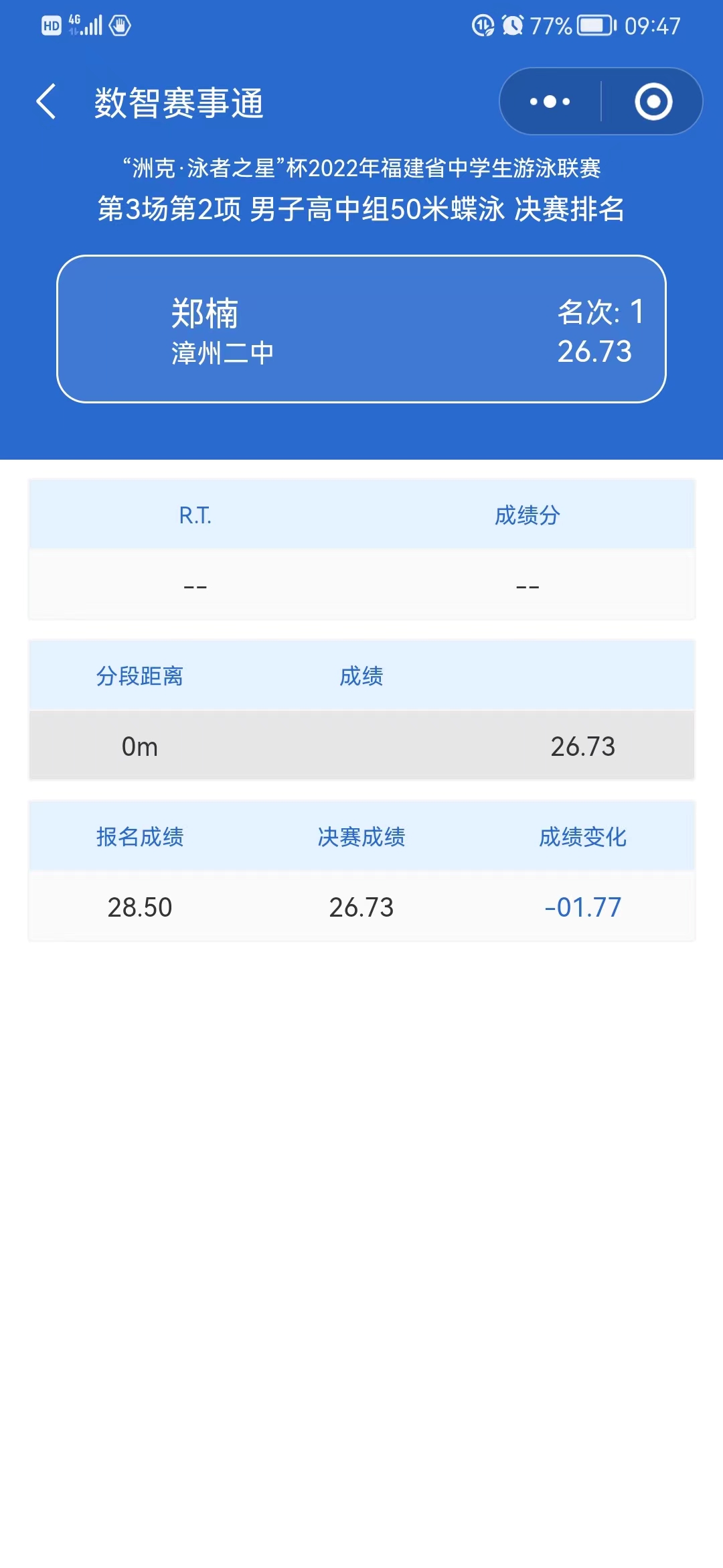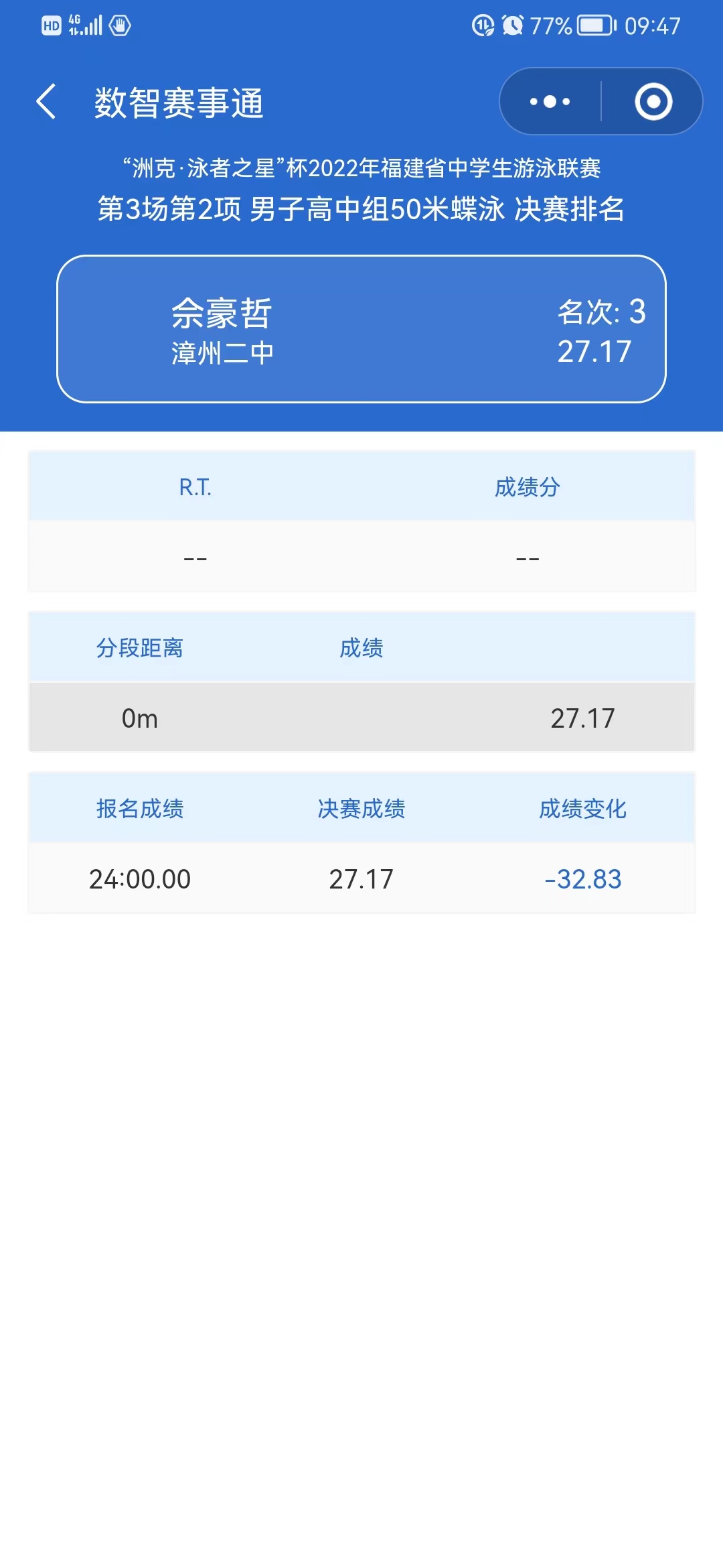 2022“州克泳者之星”杯福建省中学生游泳联赛