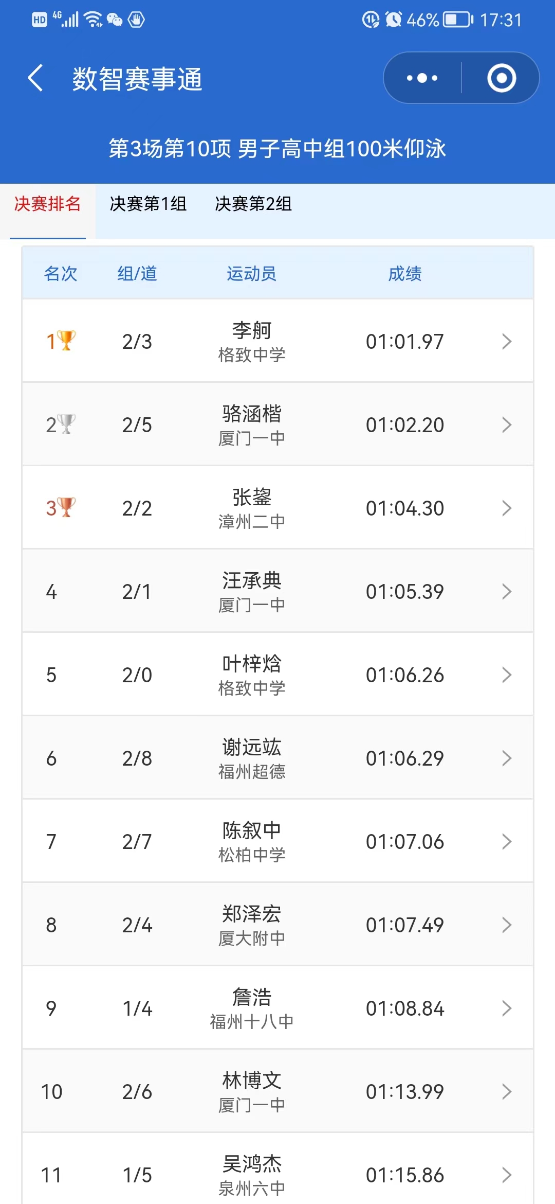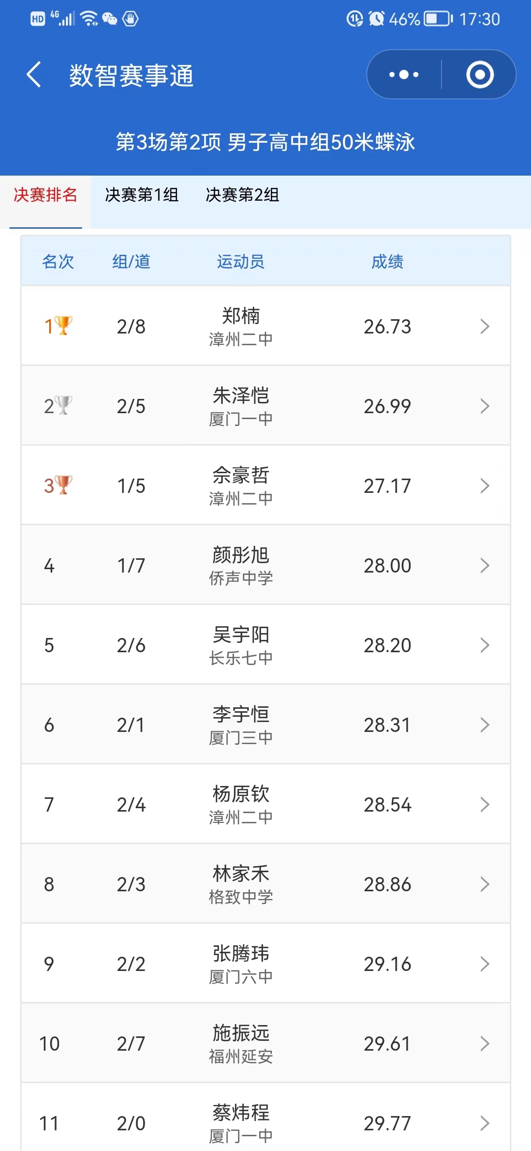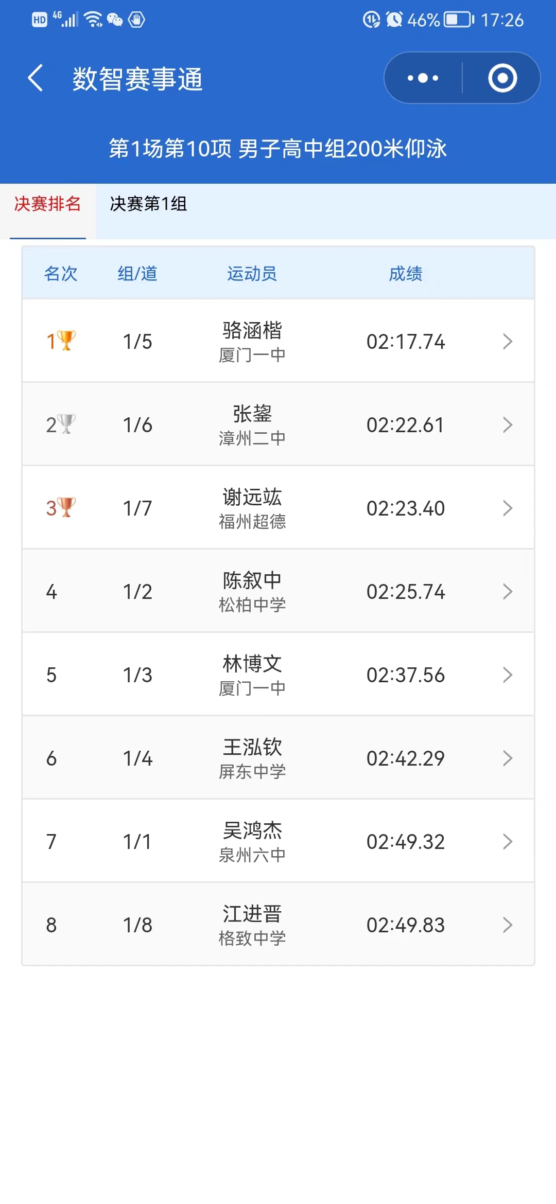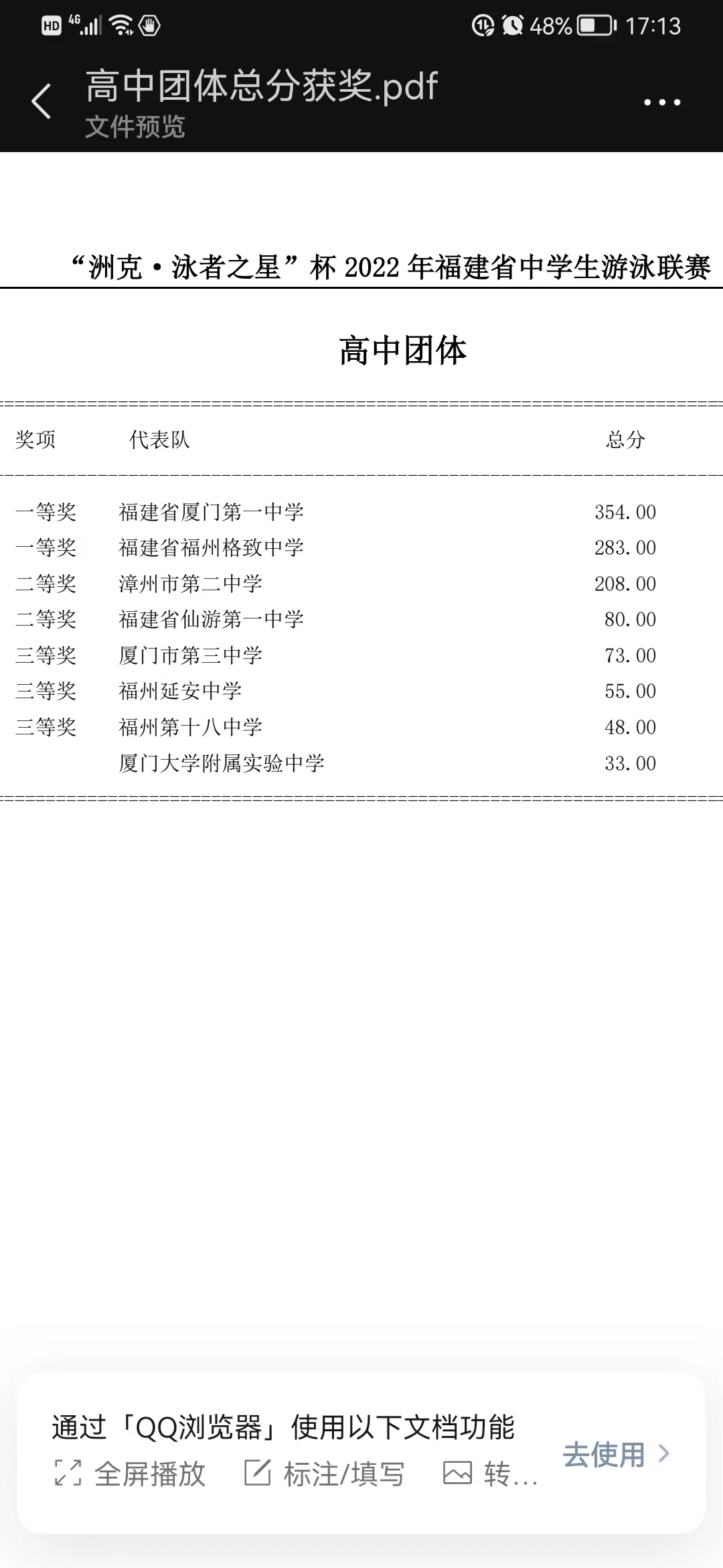 2022“州克泳者之星”杯福建省中学生游泳联赛