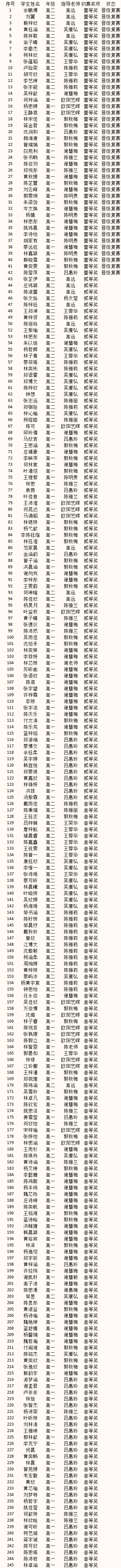 本次大赛竞争激烈,我校共计245名学子脱颖而出,荣获初赛奖项,具体获奖情况如下: