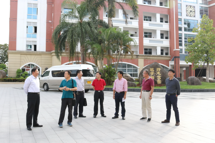 日,教育部专家组韩立中、张传若、陆世德等三位领导在漳州市教育局副处级调研员骆沙舟等陪同下莅校调研指导教育教学管理工作