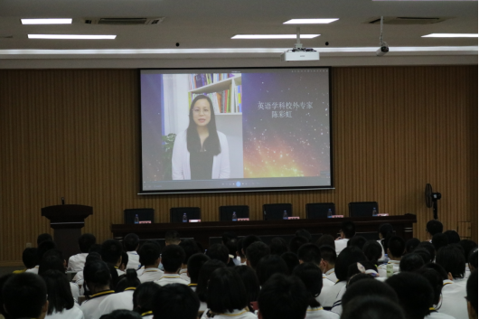 与会全体师生共同观看了高一、高二创新班学生们的学习生活短视频和ylzz总站线路检测中心校外专家寄语短视频。